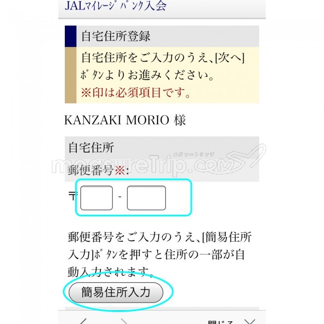 JMB入会方法 スマホ編8:自動で表示される住所の確認