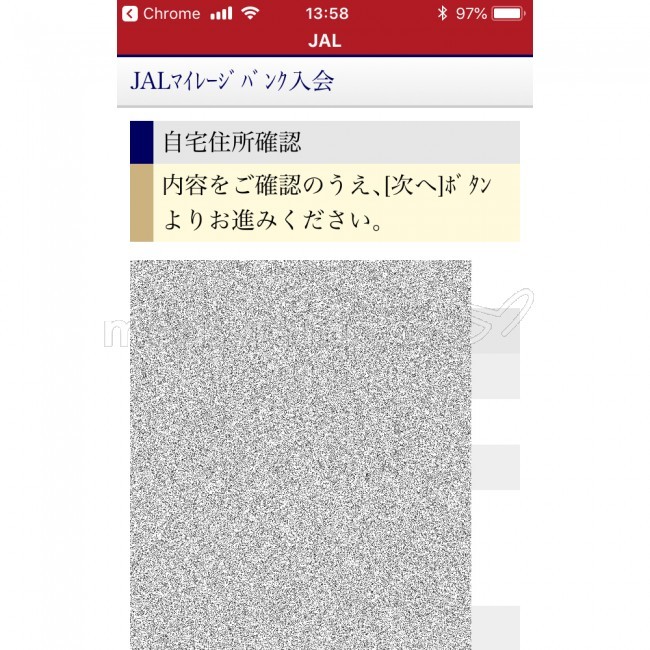 JMB入会方法 スマホ編11:住所に間違いがなければ次へ