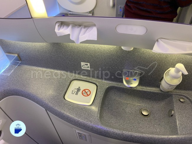 さて、このANAさんのB787-9に乗って一番驚いたのはこちら、トイレがなんと、温水のウォッシュレットになっているのだ。これ、日本に住んでない人が乗ったらめちゃくちゃびっくりするんじゃないかと思う。日本のトイレはどこ行ってもほとんどウォッシュレットだけど、まさか飛行機のトイレまでウォッシュレットとは・・・参りました。