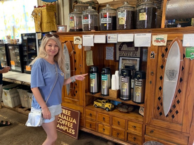しかし、店舗の奥に進むと、ここのオールドシュガーミルブランドのワイアルア・コーヒーを試飲できるコーナーも置かれている。ここのコーヒーは、ドールプランテーションなんかに置いてあるワイアルアコーヒーに比べて一回り高いが、焙煎プロセスの違いを楽しめる様になっていたり、ピーベリー100%のワイアルアコーヒーを置いていたりと、かなりこだわりのあるコーヒーを購入することができるのが魅力だ。