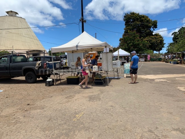 週末というのは、ハワイの色んな場所でイベントが開催されているようで、ここ、ワイアルア・コーヒー・ファクトリーの駐車場の一角でも非常に規模は小さいがファーマーズマーケットが開催されている。ここのワイアルア・ファーマーズマーケットの開催は、毎週土曜日8:30〜13:00。KCCファーマーズマーケットよりも長い時間開催されている小さな朝市だ。