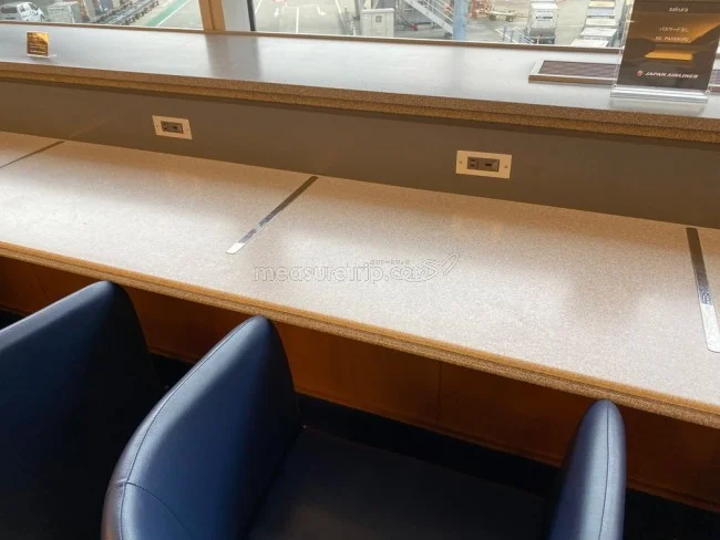 なお、セントレアのJAL サクララウンジは、客席にはこのように電源タップ(Aタイプ)とUSBポートが備わっているので、スマホやノートPC、タブレットを利用する環境は十分。もちろん無料のWiFiも備わっている。
