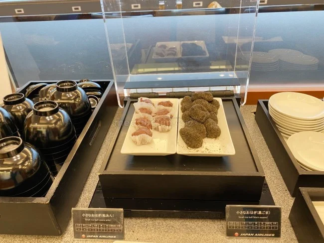 インスタントコーナーのお隣には、日本のお菓子「おはぎ」も用意されている。このセントレアのJALサクララウンジは、ホットミールは少ないが、カレー2種類にインスタント食品、そして和菓子と、今の日本の食生活を凝縮したような品揃えのフードメニューが用意されているというわけだ。