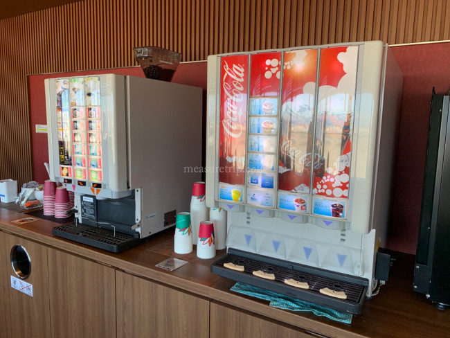空港ラウンジといえば、気になるのはやはり無料で利用できる飲食コーナー。このカードラウンジ「アネックス六甲」でもラウンジ利用者がセルフサービスで好きに利用できるドリンクバーが置かれている。