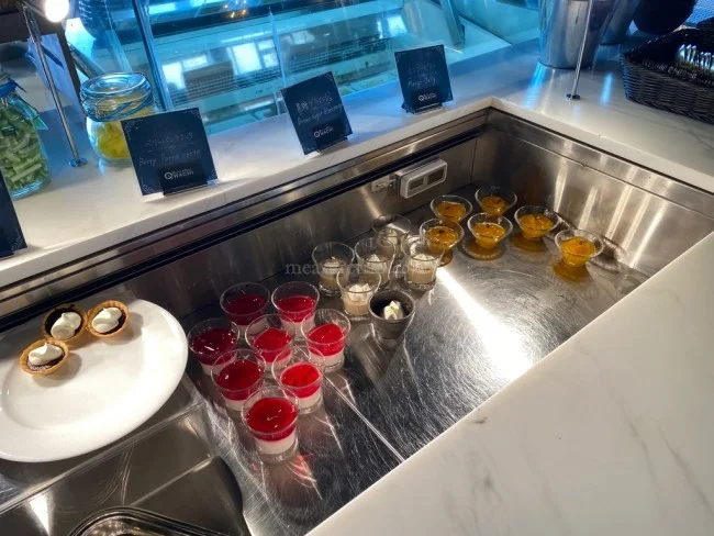 このスイーツコーナーに置かれているケーキの種類は多めで、内容もパンナコッター、黒糖プリン、マンゴーゼリー、ガトーショコラ、、、などなど、アフタヌーンティーでいただけそうな美味しそうなスイーツが並ぶ。