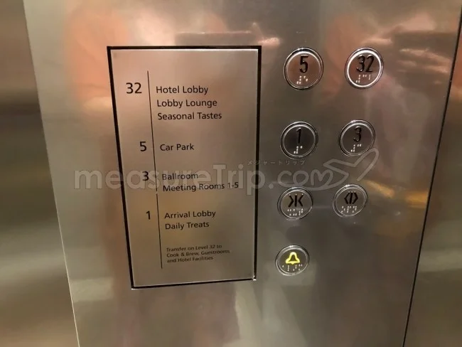 なお、客室階のあるフロアへは、このエレベーターではアクセスできず、一旦32階のレセプションフロアから、客室用のエレベーターに乗り換えてのアクセスとなる。