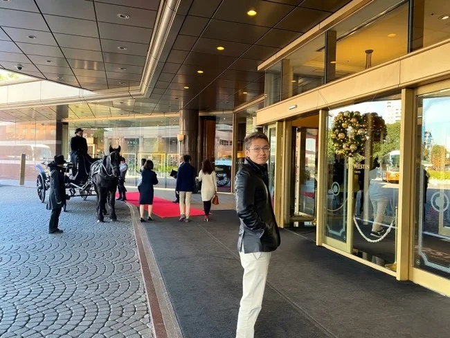 私達がこのウェスティンホテル東京を訪れたのは12月も中頃のクリスマスシーズン。ホテルロビーには、クラシックでゴージャスなクリスマスデコレーションが施され、中央には大きなクリスマスツリーも飾られていた。クルーズ船のクリスマスの装飾にもよく似ており、キラキラ感が凄くてとにかくゴージャスな雰囲気だ。