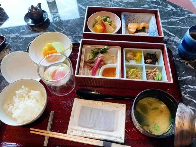 それでは、実際にリッツカールトン京都での朝食を見ていこう。まずは日本料理レストラン「水輝 - みずき」さんが手掛ける和朝食から。この水輝さんの和朝食は、ゲストの到着に合わせてご飯を炊き上げるため、前日までに予約しておく必要があるので注意しよう。