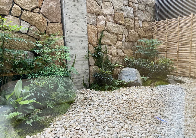 壁一面のガラスの向こうには『京都の二条城の向かいにあるホテル』という和のシチュエーションそのままの世界をギュッと凝縮したような坪庭があり、華美ではない中にも凛とした世界観が佇んでいます。禅を思わせるような坪庭を見ていると心が落ち着き、リラックスした気分になっていきます。