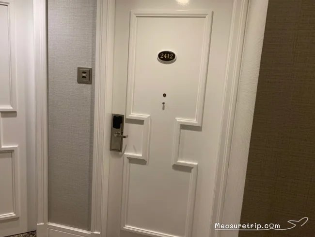 入口の扉付近には「Do not disturb / Make up room」のアサインスイッチと部屋の照明をON / OFF できる調光パネル、そしてカードキーを差し込むマスター電源パネルが備わる。
