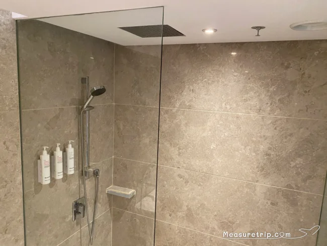 シャワールームの壁には備え付けのバスアメニティ。ちなみにバスアメニティのブランドはマリオットホテル共通の「ThisWorks / イギリス」。