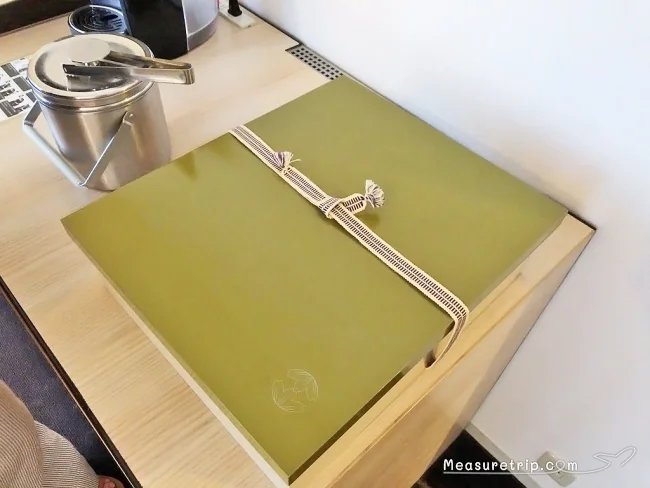 テレビボードの端に置かれていた、帯付き箱。これはかなり和の雰囲気たっぷりだが、、、一体何が入っているのだろう。