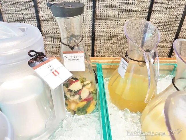 最近流行っている、デトックスウォーターも置かれていた。あとは牛乳、アップルジュースなど、ほんと、この朝食は欲張っても食べきれないぐらいの種類の美味しそうなメニューが揃っている。