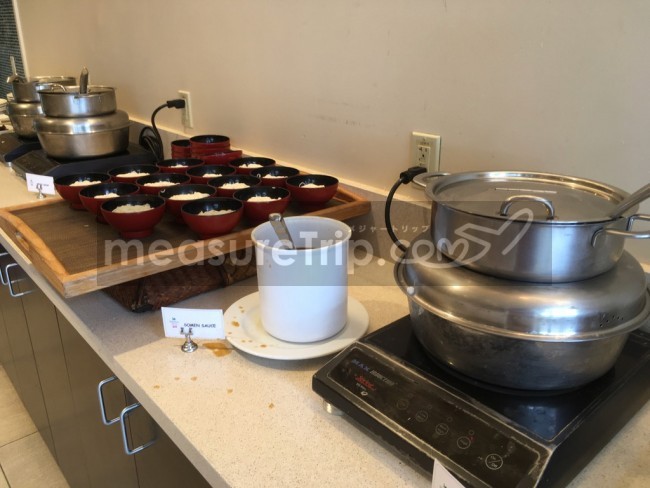 日本人が多いホテルということで日本食も隅っこの方に置かれていた。メニューはそうめん、味噌汁、おかゆさんなど。