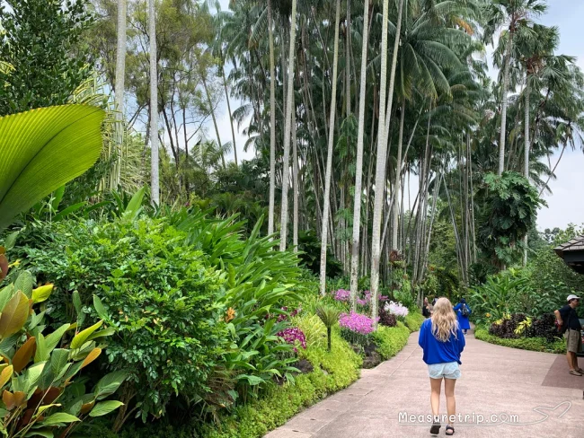 シンガポール植物園入り口を入ってすぐの場所にあるのは、ヤシの木を整然と並べて植えた庭園。この椰子の木の風景のシルエットは、ガーデン・バイ・ザ・ベイの巨大な柱を小さくしたようにも見えるが、私が思うに、ガーデン・バイ・ザ・ベイのあの巨大柱はこのボタニックガーデンをモチーフに作られたのだろう。
