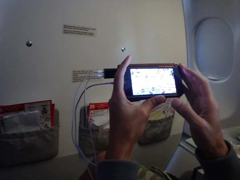 [インドネシアのパリピ秘境・ギリ島旅行記9] 1日目・機内はモニターが無いけど、1300円ほどでタブレットを借りられる