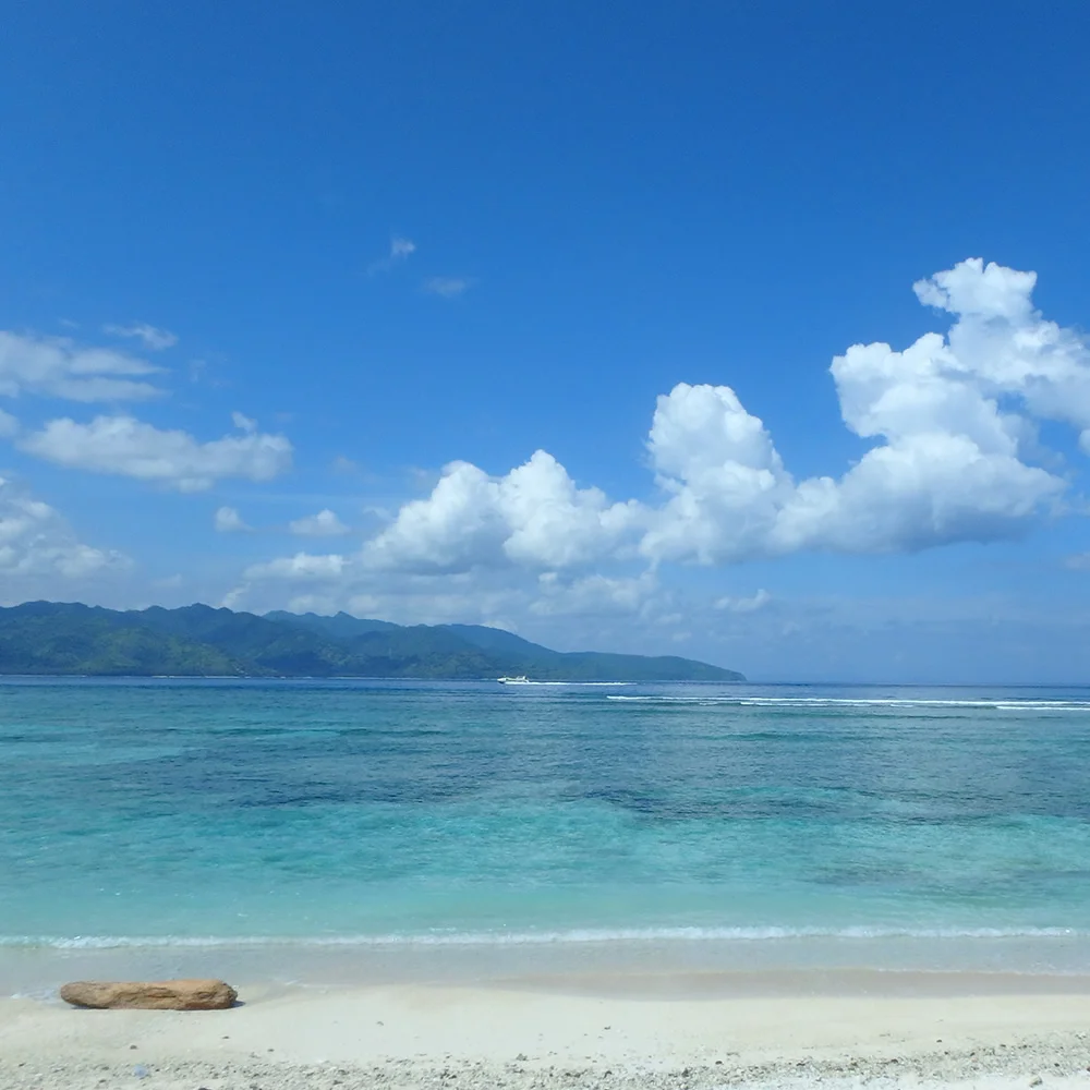 ゴールデンウィークにLCCエアアジアで行くインドネシア・ギリ・トラワンガン編3日目。とうとうこのギリ・トラワンガン島の一番きれいじゃないかと思えるビーチを発見する。向こうに見えるのはロンボク島。