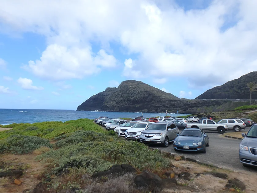 エアアジア・ハワイ初就航便で行くオアフ旅行・1日目。ラナイルックアウトを出て、次に私達が訪れたのは「マカプウ」というビーチ&ゴツゴツ岩海岸線エリア。目の前には絶景が広がっている。