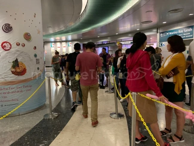 ガーデン・バイ・ザ・ベイからの帰り。ホテルまでの移動方法で、GRAB(グラブ)にするかMRTにするか悩んだが・・・結局、MRTで帰ることに決めた。しかし、駅の券売機は長蛇の列・・・。間に合うか?(汗)