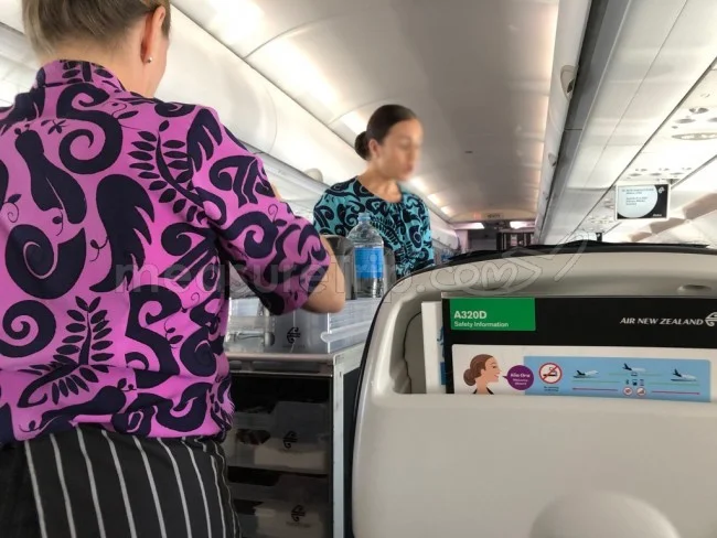 ニュージーランド航空の国内線では、機内サービスはドリンクと簡単なスナック菓子が提供される。約1時間30分の短いフライトで、機内はエコノミークラスのみの1クラス制。また座席はリクライニングなどは出来ない。