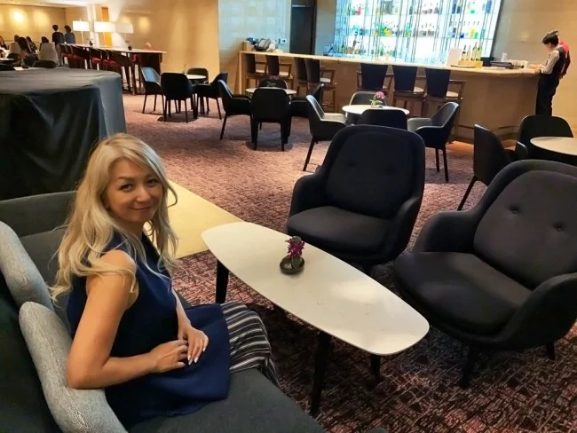 ベトナム航空のビジネスクラスラウンジ「ロータスラウンジ」にて。乗り継ぎの搭乗時間まで、あと20分を切ろうかというタイミングで、乗り遅れるかもとミヅキが心配し始める。10分あればたどり着くと私は主張するが、ここで意見が食い違い軽い夫婦喧嘩。。。仕方ない。出発ゲートに向かおうか。
