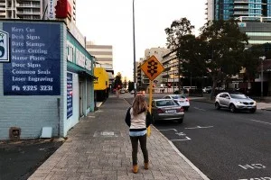 レンタカーのシャトルバスを待つ私たち。周りには大きな建物がなく突き抜けるような雲ひとつない大きな空が広がっている。このパースは南半球にあるので、日本とは季節が真逆。日本がだんだんと冬を迎える頃、パースは夏を迎える準備を始めている。夜には10度を下回り、明け方ごろには6度前後にまで冷え込むようだ。風邪をひかないように気をつけなくちゃ。