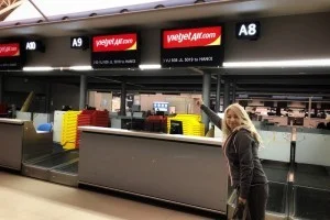 ベトジェットエアの関西空港(大阪)初就航、ハノイ行き!早く着きすぎてまだ誰も居ないw 一番乗りで張り切って並ぼう。